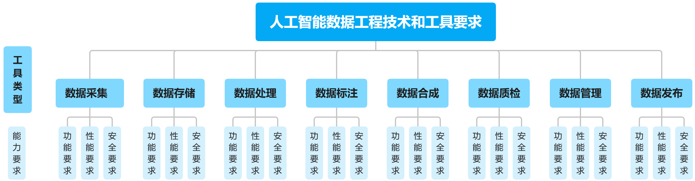 《人工智能 关键基础技术 数据工程工具能力要求》:旨在面向人工智能数据服务企业、大模型企业以及行业企业评估人工智能数据工程工具的功能、性能、安全等三方面技术能力水平,具体覆盖数据采集、数据存储、数据处理、数据标注、数据合成、数据质检、数据运营等核心技术环节。